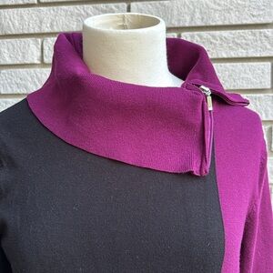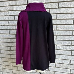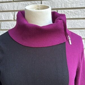 Cleo Black and Purple Cowl Neck Sweater with Zipper Detail Sz M