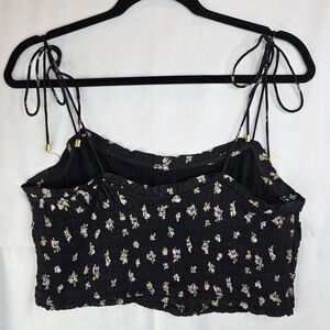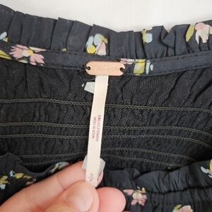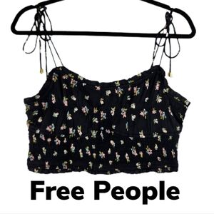Free People Black Floral Smocked Cropped Tie At Shoulder Summer Top Sz S.
