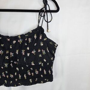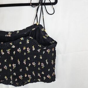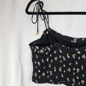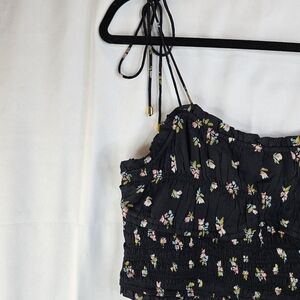 Free People Black Floral Smocked Cropped Tie At Shoulder Summer Top Sz S. Get your beach on in this Lil cutie.