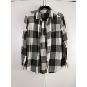 Old Navy Classic Shirt Womens Medium Green Buffalo Plaid Button Down Cotton