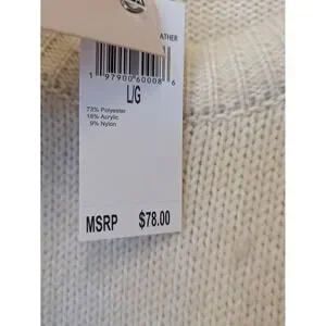 Philosophy Republic Clothing Women's Size L Cream Ribbed Crewneck Sweater NWT