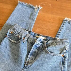 Levi’s Wedgie Straight Jeans | Size 24 | Raw Hem High Rise Vintage Wash