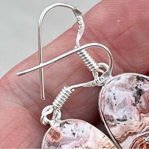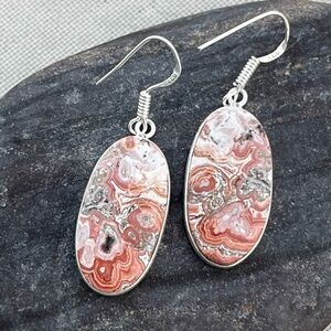 Handcrafted Crazy Lace Agate Sterling Silver 2” Earrings. Stamped 925 on hooks. Gorgeous Pink, Orange & Beige tones!