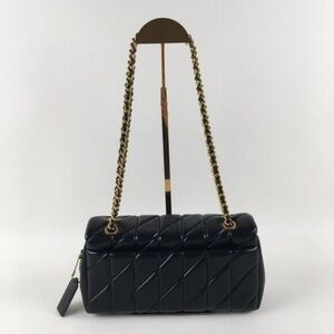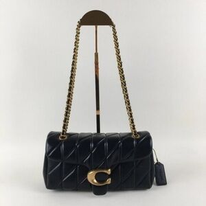 Sophisticated black quilted design. Elegant gold chain strap. Signature Coach style.