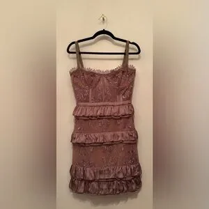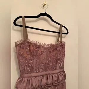 The Peony dress is a fitted corset mini length dress with lace and ruffle details that will make you swoon.