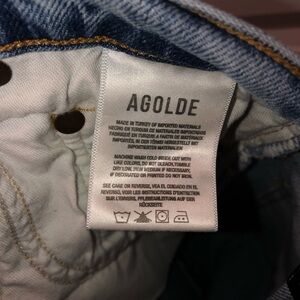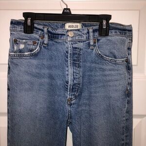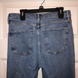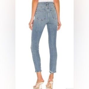 Agolde Blue Denim Nico High Rise Skinny Jeans Raw Distressed Hem sz 27