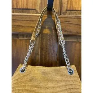 Woven Straw Shoulder Bag w/ Chain Straps Casual Lightweight Travel Vacation Bag