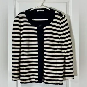 Chic striped blazer with a classic round neckline. Perfect for versatile styling. Does not fit me. More like size 10