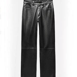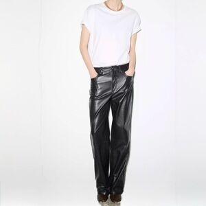 Chic black leather pants from Zara. Sleek and stylish design. Zara Women Faux Leather Pleather Black Wide Leg Pants Trousers Chic Bikercore XS