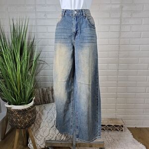 - Like New Condition Song Wide Leg High Rise Blue Muddy Wash Baggy Jeans