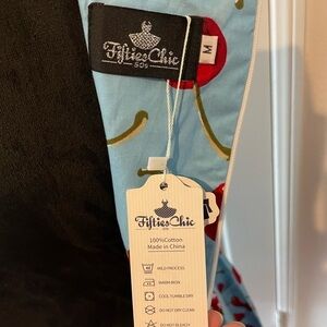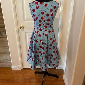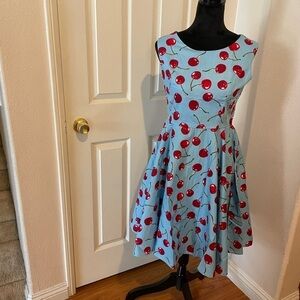 NWT womens PIN-UP BLUE DRESS WITH RED CHERRYS style dress SIZE MEDIUM