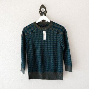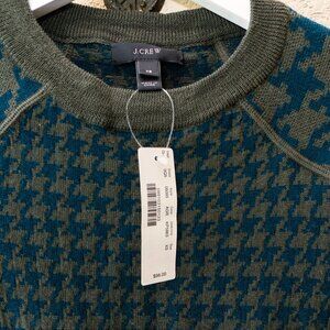 J.Crew NWT 100% Merino Wool Houndstooth Sweater Green Blue Crewneck XS $98