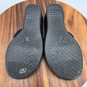 Skechers Sandals Womens 9 Black Dark Navy Rhinestones Rumblers Comfort Wedge