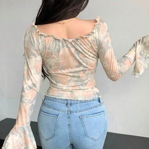 Featuring bell sleeves, ruffle trim and super soft, stretchy material