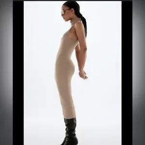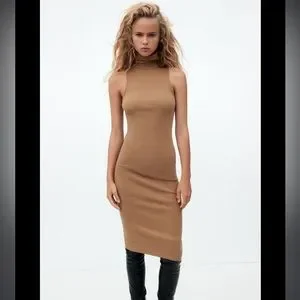 Zara HIGH COLLAR RIB DRESS in LARGE