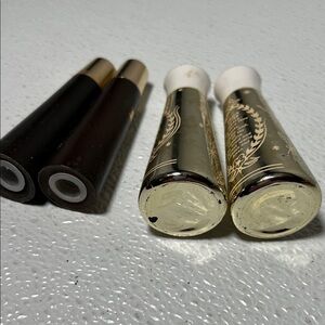 Pair of gold-tone and brown shaker sets.