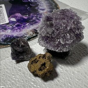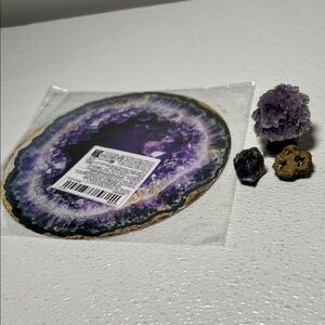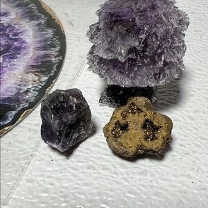 Metal Flat Amathist Picture Amathist Crystal TRee w/2 Natural Stones