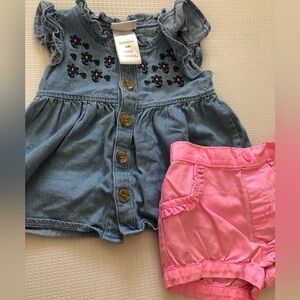 Daisy Fuentes|Mixed brand outfit•••baby girl,chambray top with floral embroidery