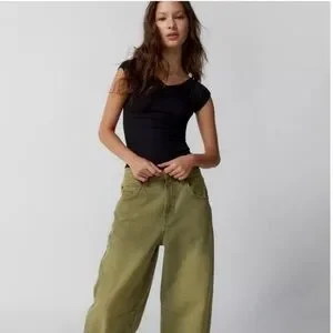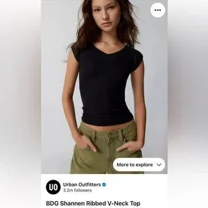 BDG Urban Outfitters Shannen Ribbed V Neck Short Cap Sleeve T shirt baby tee top