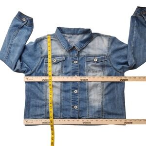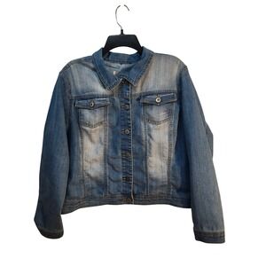 Floral Embroidered Denim Jacket Womens XL Blue Stretch Jean Boho RN149251