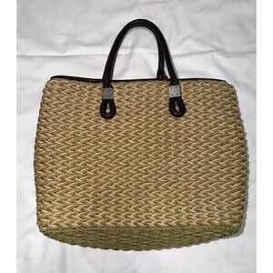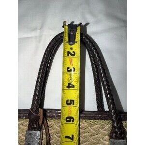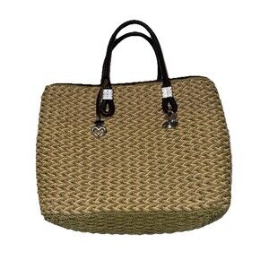 Brighton Straw Woven Tote Bag Braided Leather Handles Silver Heart Charms