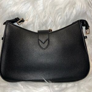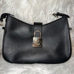 Elegant black leather shoulder bag with a sleek design. Perfect for any occasion.