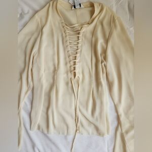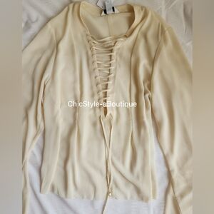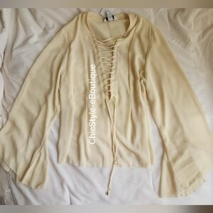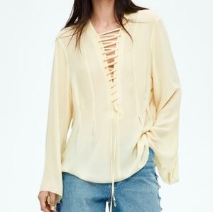 H&M S/S 2025 Edition Stunning Lacing-detail Front Chiffon Blouse M Pale Yellow. NO LOW BALLING!!!