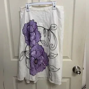 Elegant ivory skirt featuring bold lavender flowers. Perfect for any occasion.