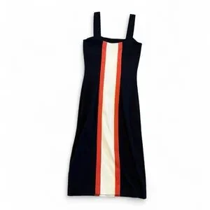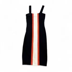 Diane Von Furstenberg Bodycon Maxi Dress Black White Orange Stripe Size 4