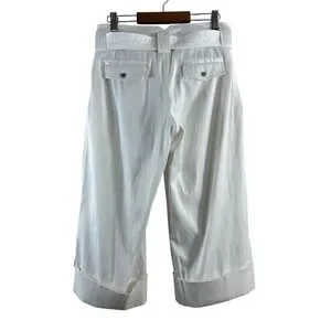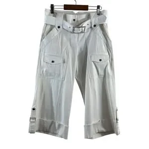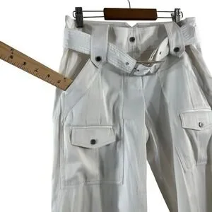 Cache White Cargo Capri Pants Belted Wide Leg Y2K Utility Trousers Womens 4