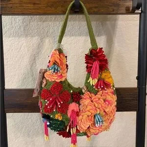 Viral Handmade Floral Beaded Statement Bag Embellished Garden Shoulder Purse NWT