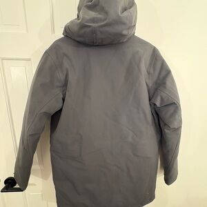 Body and hood are insulated with toasty 700-fill-power 100% Recycled Down (a blend of duck, goose down and waterfowl feathers). Insulated hood has hidden adjustment cords.