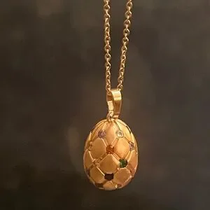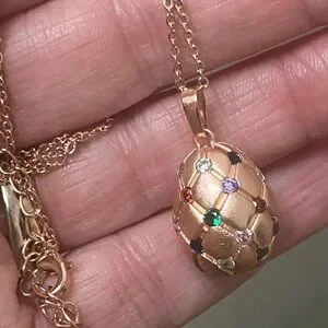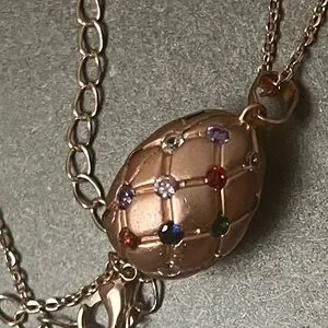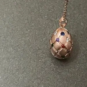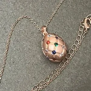 Elegant Rose Gold Egg Pendant Necklace with Multicolor Gems