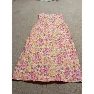 The J.Jill Love Linen Sleeveless Floral Shift Dress is a stylish and versatile addition to any woman's wardrobe. This knee-length dress features a flattering V-neckline, sleeveless design, and colorful floral pattern, making it perfect for casual or travel occasions during the summer, fall, or spring seasons. The woven linen fabric ensures breathability and comfort, while the large pockets add a practical touch to the classic shift style. Perfect for women size L and with a brand known for quality and classic designs, this dress is a must-have for those looking for a colorful and timeless piece.