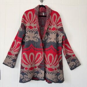 Free People Womens Intarsia Knit Oversized Cardigan Sweater Size M/L Boho