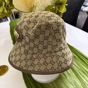 Gucci GG Supreme Monogram Bucket Hat Horsebit Gold Logo Beige Brown Italy