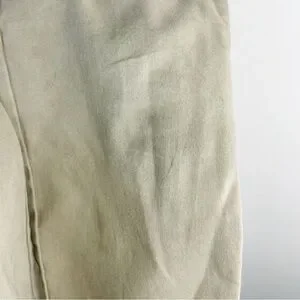 I love these Chinos or Khakis because of their color; they are just the perfect light Khaki color that matches with everything. Now, they do have some light stains on some parts of the legs but hardly noticeable; do not sleep on wear and tear scars on the pants. There’s a reason why big brands like Balenciaga and Golden Goose make brand new shoes that look destroyed and scuffed up because sometimes new new is just boring. That is why I love 2nd hand shopping; there is just more of a story and character with the pieces you find sometimes, but you know there is a time and place for everything. You want your kid to look cool and hip even when they are playing in the grass or neighborhood on their skateboards. These Chinos are a blend of %98 Cotton and %2 Spandex/Elastane.