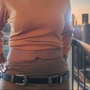 Vintage Western Style Double Buckle Faux Leather Belt Med To XL