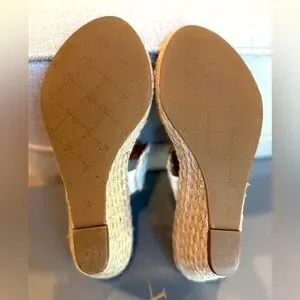 Timeless, classy summer sandals in excellent condition. Worn just once. True to size. Color-way: Bone & Gold. Style: Shelby. Matches with virtually any summer outfit. Comfortable wedge heel height, casual or formal. Work or week appropriate.