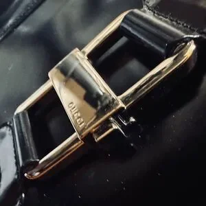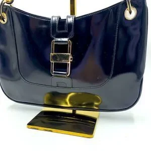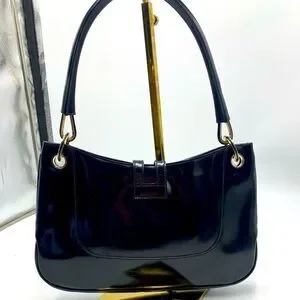 Beautiful shiny black patent leather 90's Gucci day through night shoulder bag. Easy to every day and plenty of room for all of your essentials. Single compartment pouch with interior pocket. Shiny silver metal closure and single Leather strap.