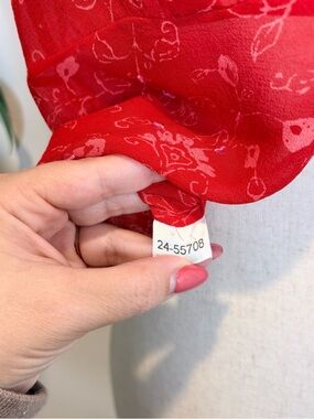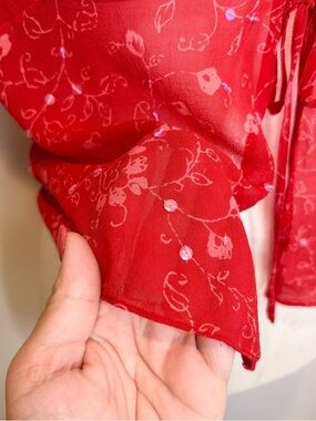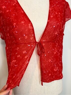 Vintage 90’s Y2K Ann Taylor Silk Tie Front Top Sequins Sheer Red