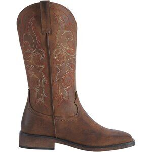 SheSole Western Boots Women Brown Cowboy Leauther Square Toe Wide Mid Calf