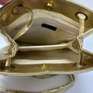 Warren Reed Women’s Gold Purse White Pearl Embellishments Double Strap Vintage