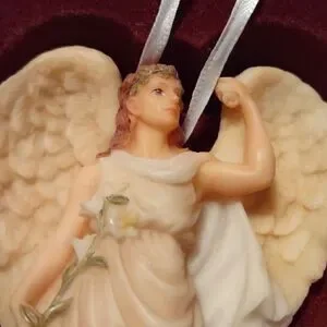 New in box Seraphim Classics angel seraphim on satin ribbon for hanging, 4 inches tall, very detailed excellent condition, perfect for any time of the year not just Christmas