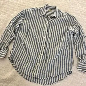 Faherty Laguna Linen blue white stripe M