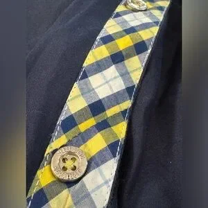 Jared Lang Button Down Navy Dress Shirt. Yellow Plaid Contrast Trim. Medium.
