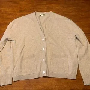 J. Crew Neutral Beige V-Neck Cashmere Button Cardigan