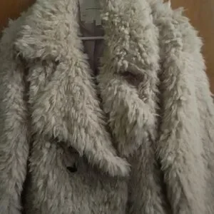 Cozy and chic teddy jacket. Soft texture and stylish design. Ideal for layering.anthropologie faux fur peacoat the fabric content is faux fur and polyester demensions are arm pit to arm pit 23" x 24" in length