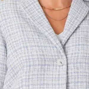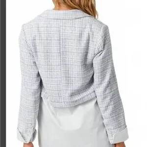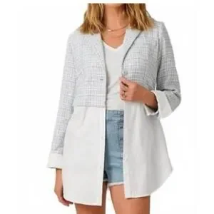 Mystree Women’s medium 2fer mixed blazer blue/gray & white mixed plaid pattern