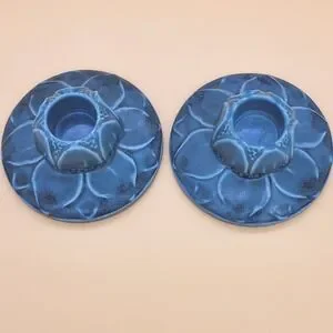 Antique Rookwood Pottery Lily Pad Candlestick Pair #2311 Blue circa 1923